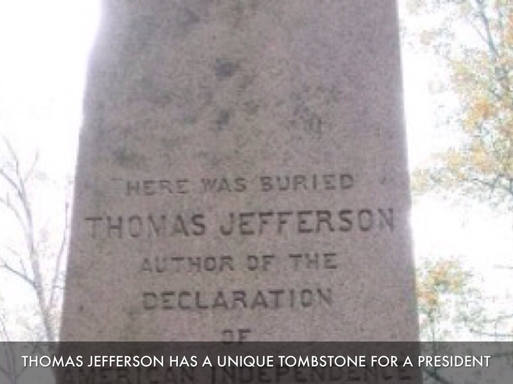 THOMAS JEFFERSON HAS A UNIQUE TOMBSTONE FOR A PRESIDENT