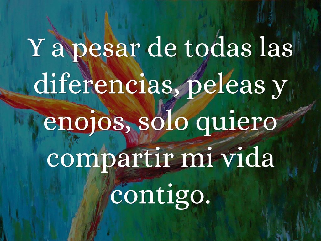 Y a pesar de todas las diferencias, peleas y enojos, solo quiero compartir mi vida contigo.