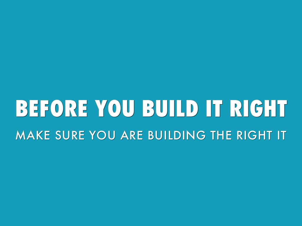 BEFORE YOU BUILD IT RIGHT