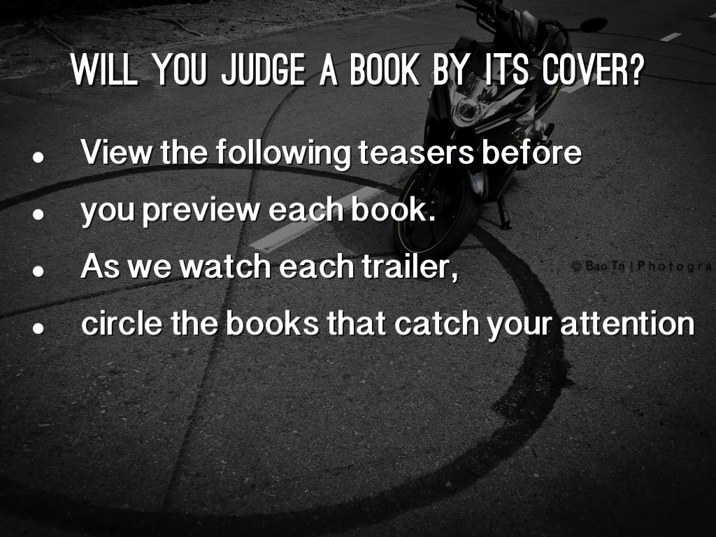 WILL YOU JUDGE A BOOK BY ITS COVER?