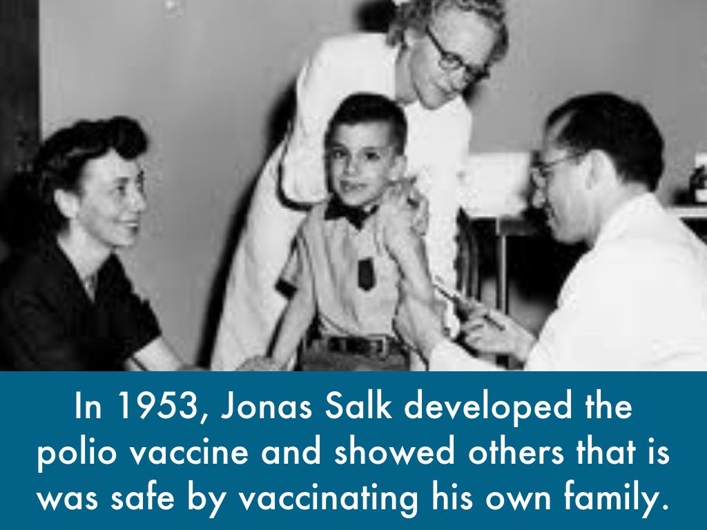 In 1953, Jonas Salk developed the polio vaccine and showed others that is was safe by vaccinating his own family.