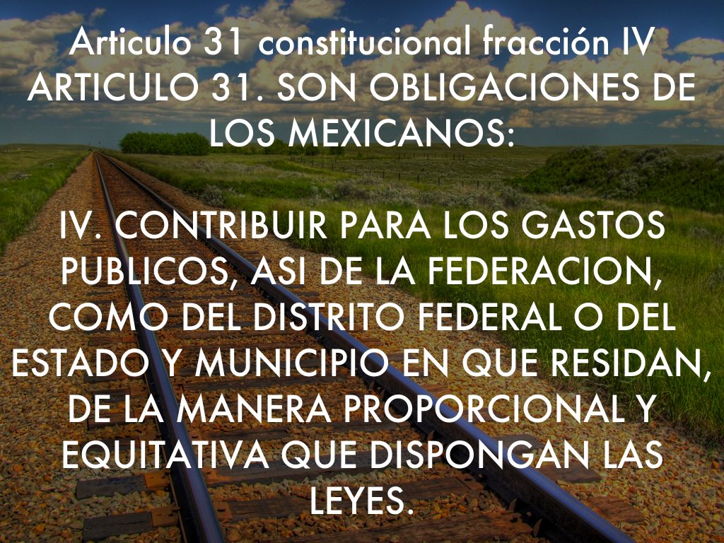 Articulo 31 constitucional fracción IV ARTICULO 31. SON OBLIGACIONES DE LOS MEXICANOS: