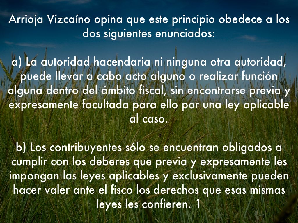 Arrioja Vizcaíno opina que este principio obedece a los dos siguientes enunciados: