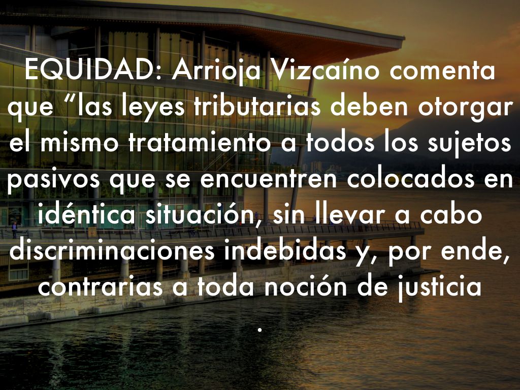EQUIDAD: Arrioja Vizcaíno comenta que “las leyes tributarias deben otorgar el mismo tratamiento a todos los sujetos pasivos que se encuentren colocados en idéntica situación, sin llevar a cabo discriminaciones indebidas y, por ende, contrarias a toda noción de justicia