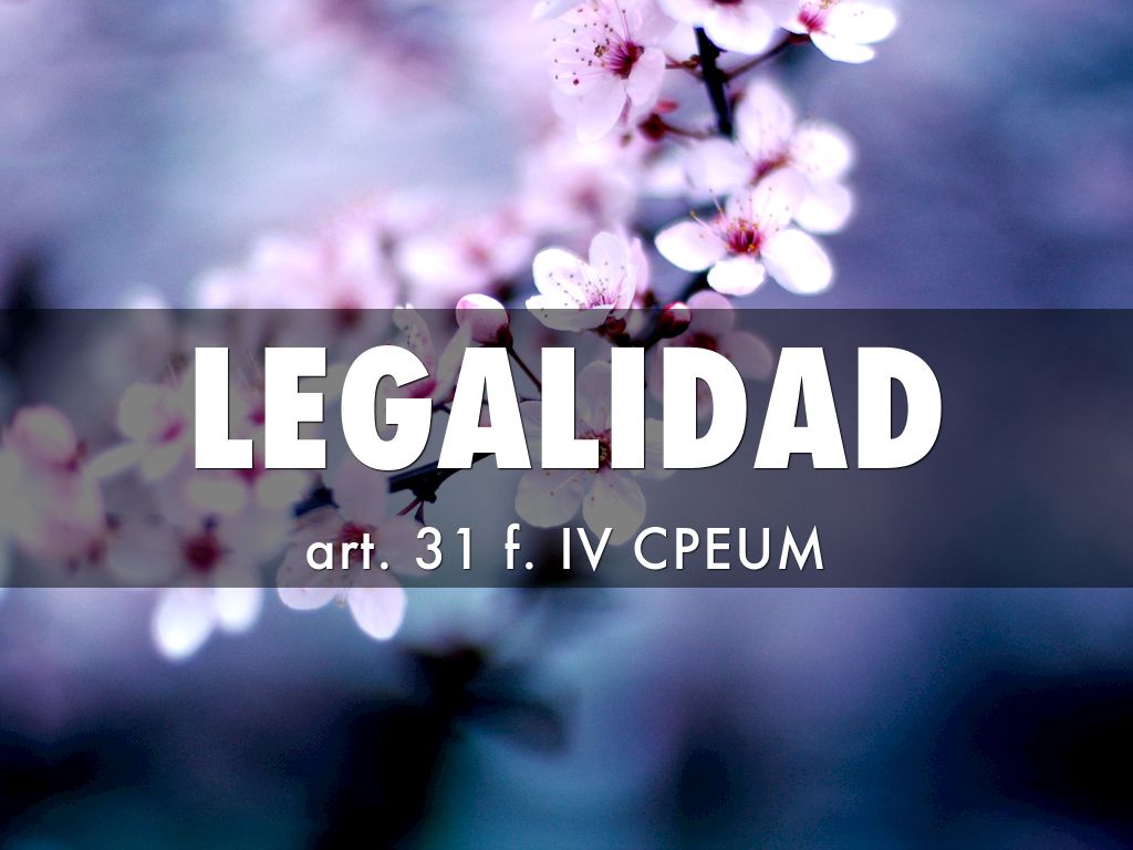 LEGALIDAD El principio de legalidad se resume en el aforismo nullum tributum sine lege, que se traduce en la necesidad de que el impuesto, para que sea válido, debe estar consignado siempre en una ley.