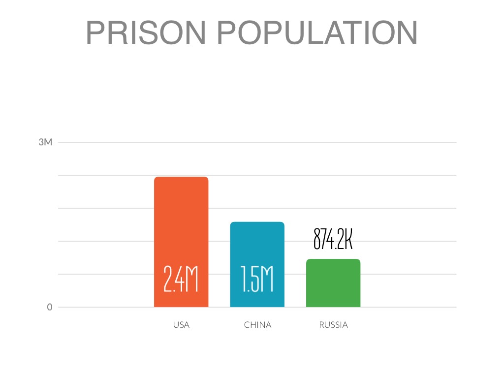 Russia has a prison population of 874,161