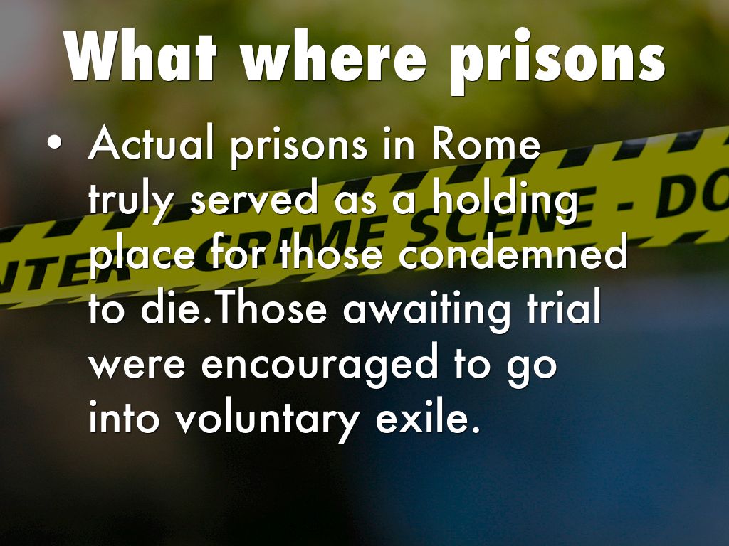 Actual prisons in Rome truly served as a holding place for those condemned to die.Those awaiting trial were encouraged to go into voluntary exile.
