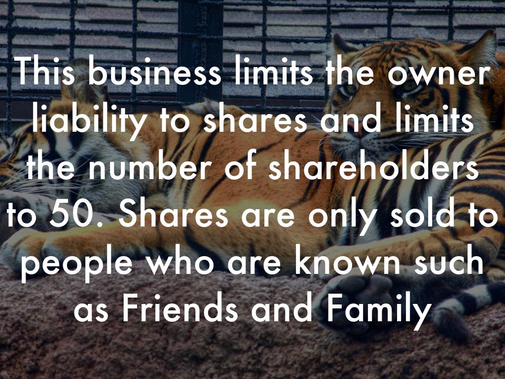 This business limits the owner liability to shares and limits the number of shareholders to 50. Shares are only sold to people who are known such as Friends and Family
