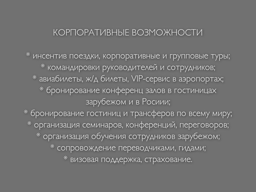 КОРПОРАТИВНЫЕ ВОЗМОЖНОСТИ