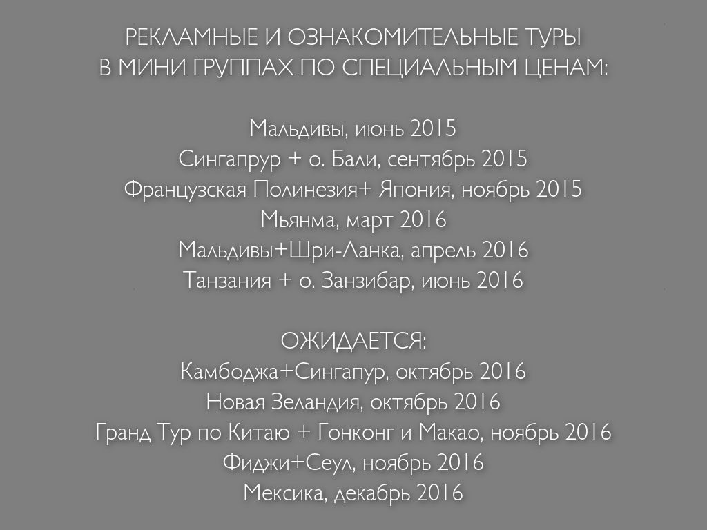 РЕКЛАМНЫЕ И ОЗНАКОМИТЕЛЬНЫЕ ТУРЫ