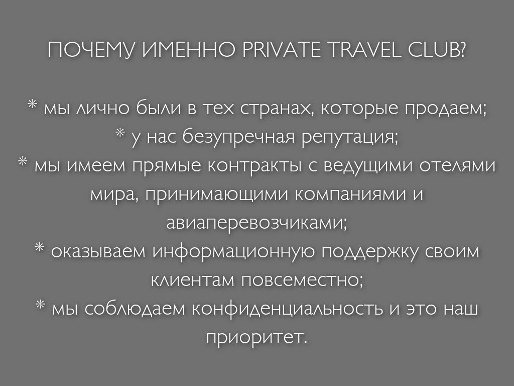 ПОЧЕМУ ИМЕННО PRIVATE TRAVEL CLUB?
