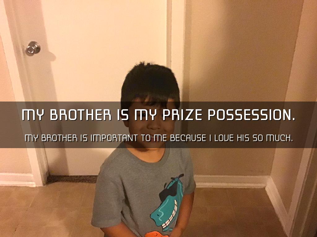 MY BROTHER IS IMPORTANT TO ME BECAUSE I LOVE HIS SO MUCH.