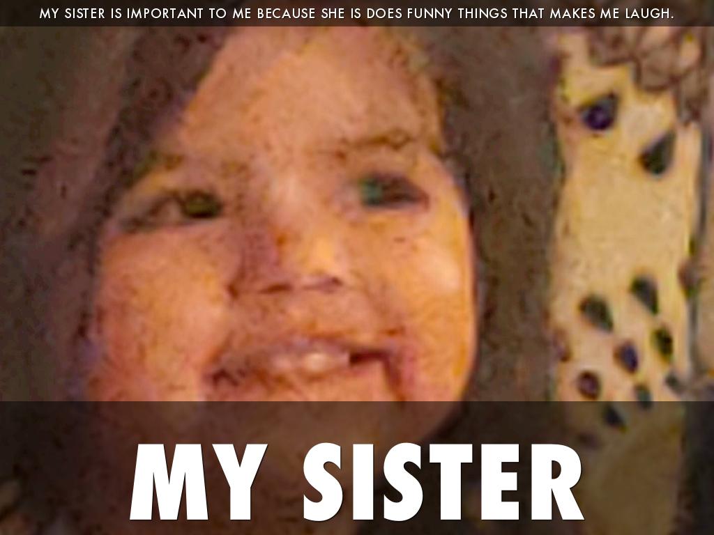 MY SISTER IS IMPORTANT TO ME BECAUSE SHE IS DOES FUNNY THINGS THAT MAKES ME LAUGH.
