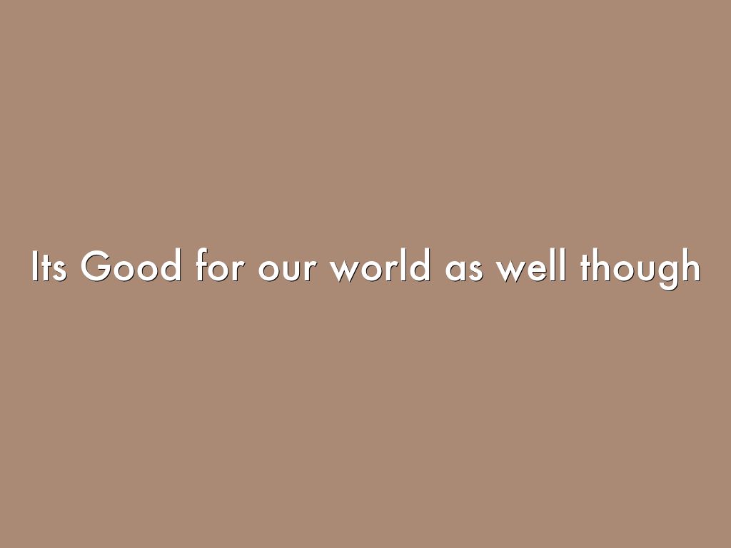 Its Good for our world as well though