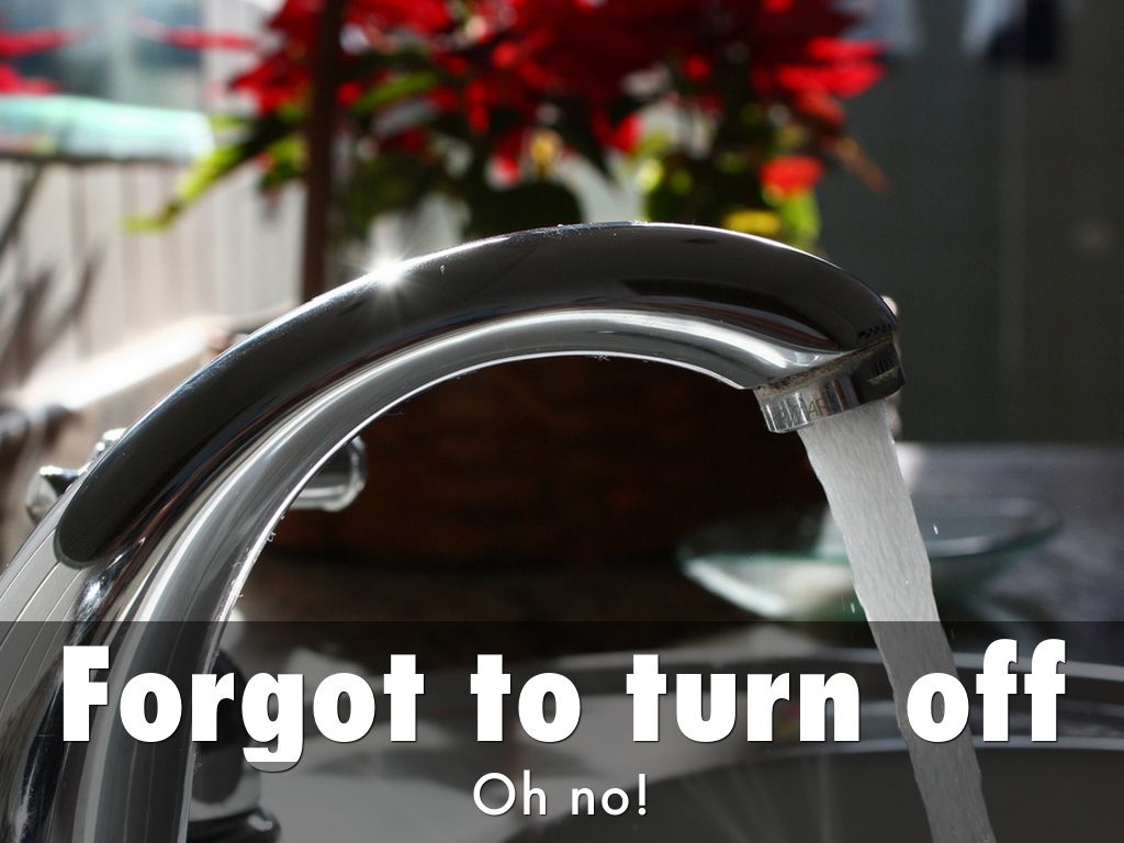 Oh no! I forgot TO TURN OFF the faucet before I left my house! I'm going to have a huge water bill this month.