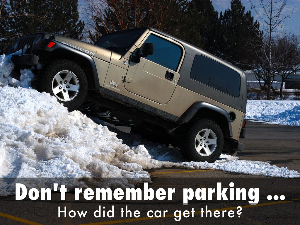 My car is on a snow pile! How did it get there? I don't remember PARKING there!