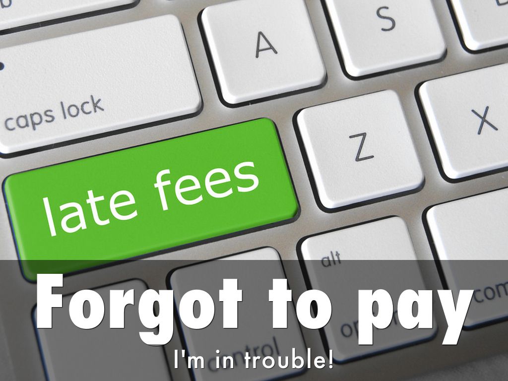 Oops! My phone bill was due yesterday, but I forgot TO PAY it. Now I will have to pay a late fee.