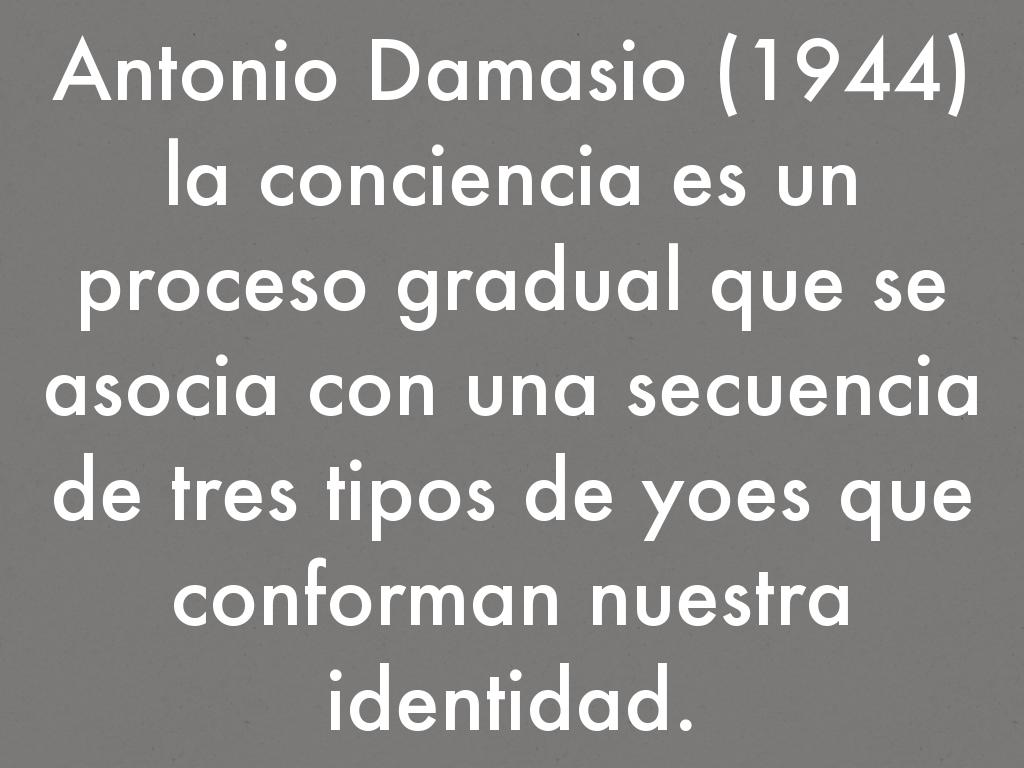 Antonio Damasio (1944) la conciencia es un proceso gradual que se asocia con una secuencia de tres tipos de yoes que conforman nuestra identidad.