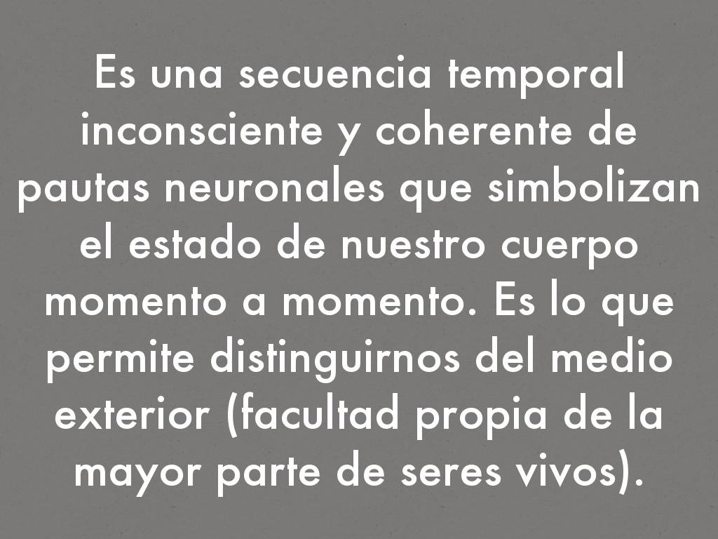 Es una secuencia temporal inconsciente y coherente de pautas neuronales que simbolizan el estado de nuestro cuerpo momento a momento. Es lo que permite distinguirnos del medio exterior (facultad propia de la mayor parte de seres vivos).