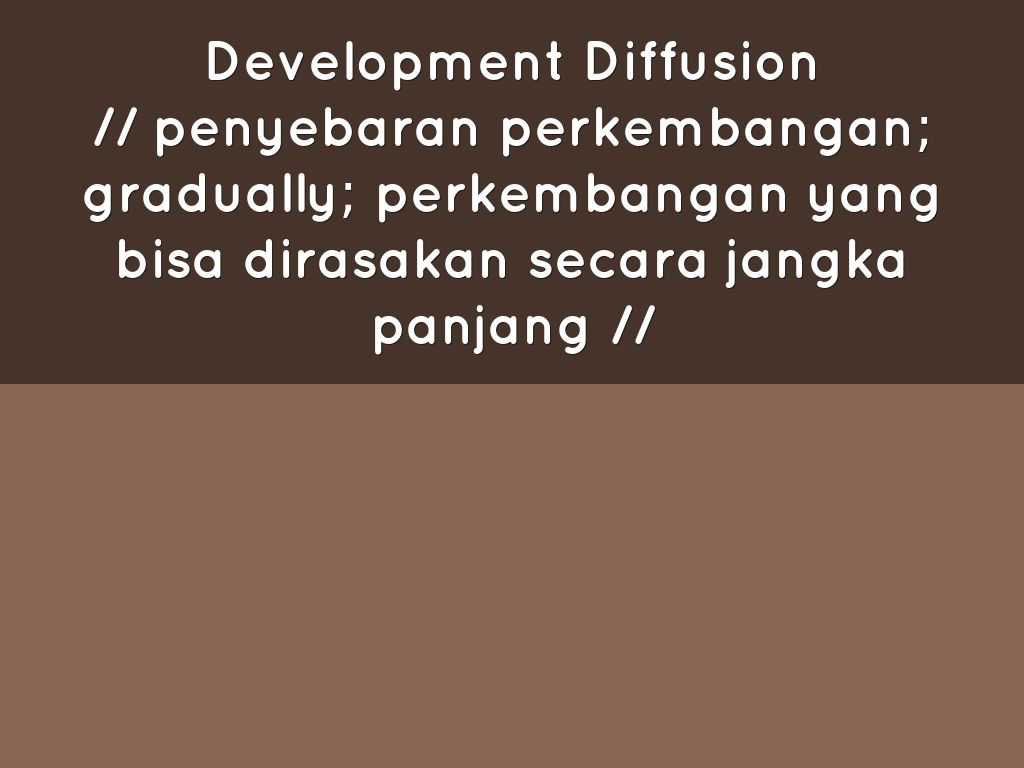 // penyebaran perkembangan; gradually; perkembangan yang bisa dirasakan secara jangka panjang //