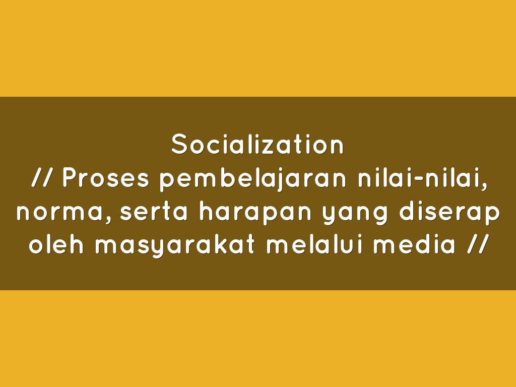 // Proses pembelajaran nilai-nilai, norma, serta harapan yang diserap oleh masyarakat melalui media //