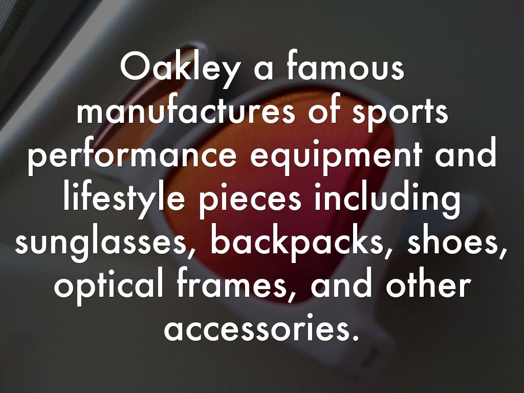 Oakley a famous manufactures of sports performance equipment and lifestyle pieces including sunglasses, backpacks, shoes, optical frames, and other accessories.