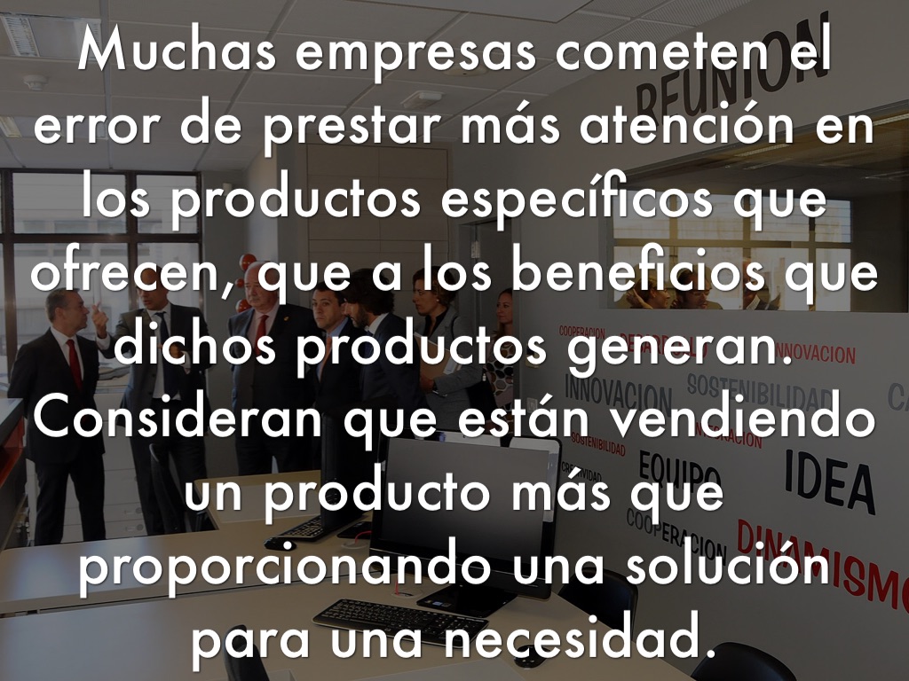 Muchas empresas cometen el error de prestar más atención en los productos específicos que ofrecen, que a los beneficios que dichos productos generan. Consideran que están vendiendo un producto más que proporcionando una solución para una necesidad.