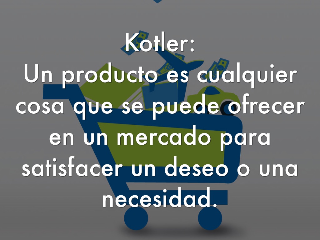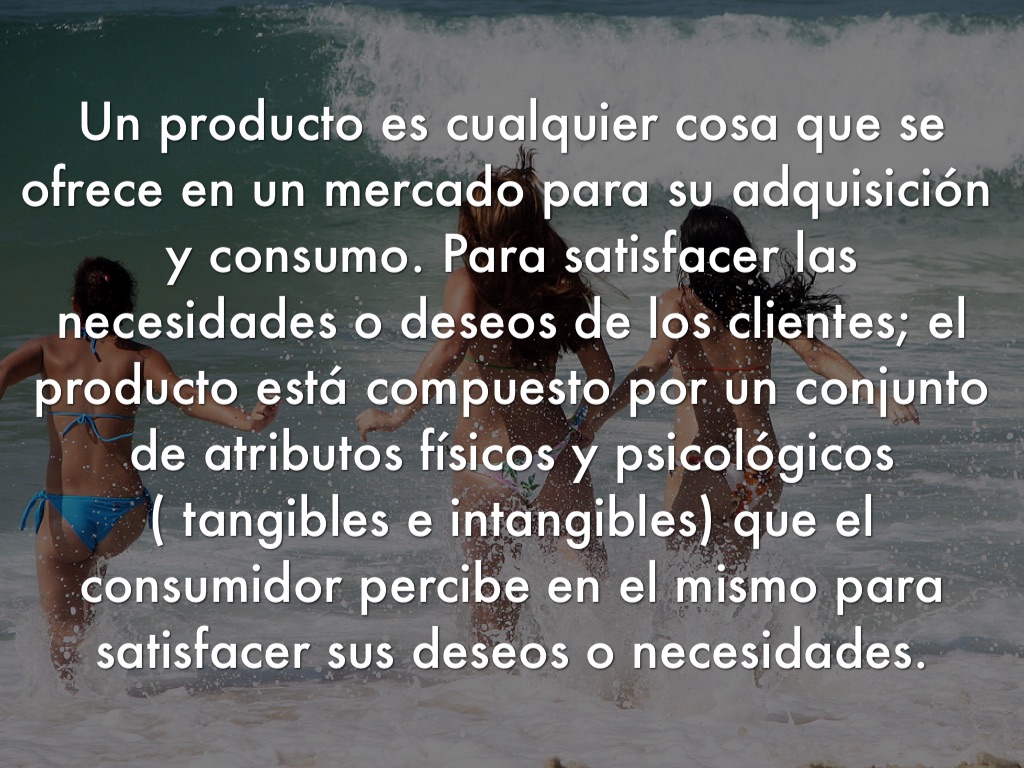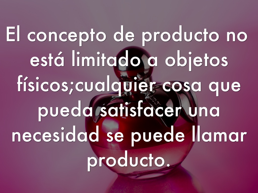 Un producto es cualquier cosa que se ofrece en un mercado para su adquisición y consumo. Para satisfacer las necesidades o deseos de los clientes; el producto está compuesto por un conjunto de atributos físicos y psicológicos ( tangibles e intangibles) que el consumidor percibe en el mismo para satisfacer sus deseos o necesidades.