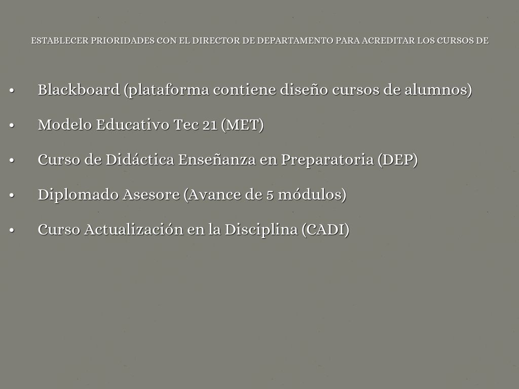Establecer prioridades con el director de departamento para acreditar los cursos de
