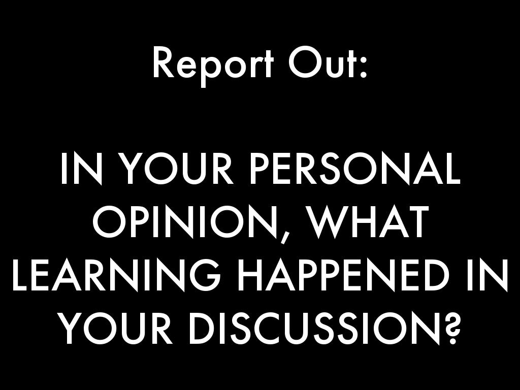 IN YOUR PERSONAL OPINION, WHAT LEARNING HAPPENED IN YOUR DISCUSSION?
