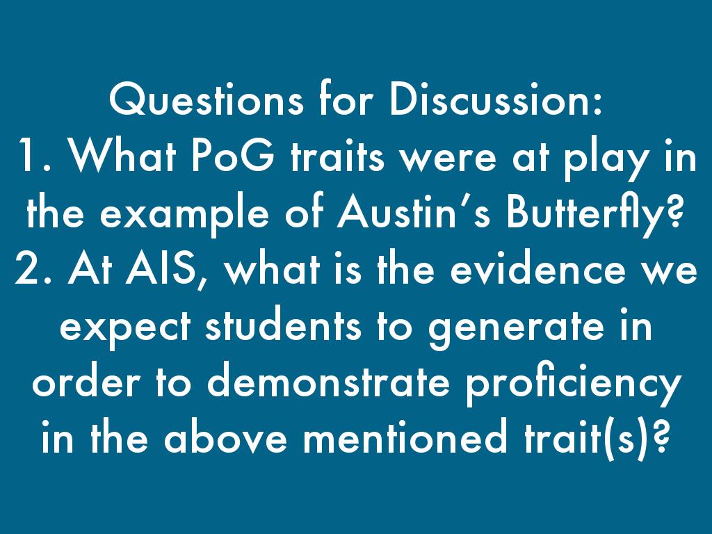 1. What PoG traits were at play in the example of Austin’s Butterfly?