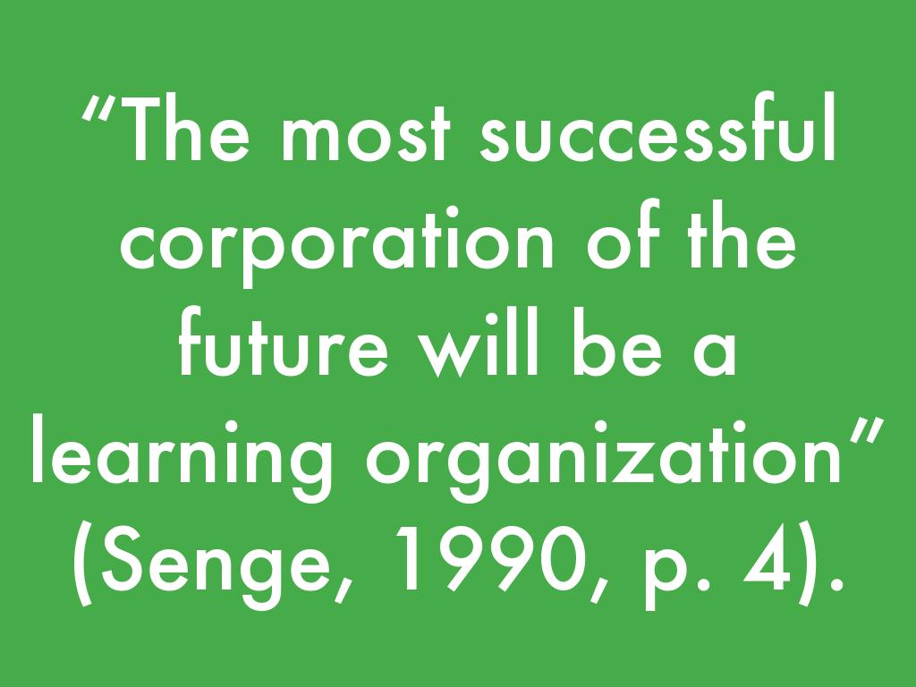 “The most successful corporation of the future will be a learning organization” (Senge, 1990, p. 4).