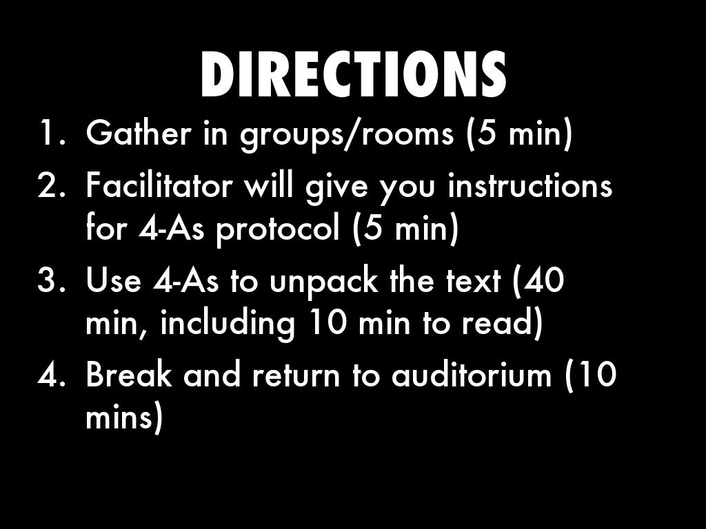 • Use 4-As to unpack the text (40 min, including 10 min to read)