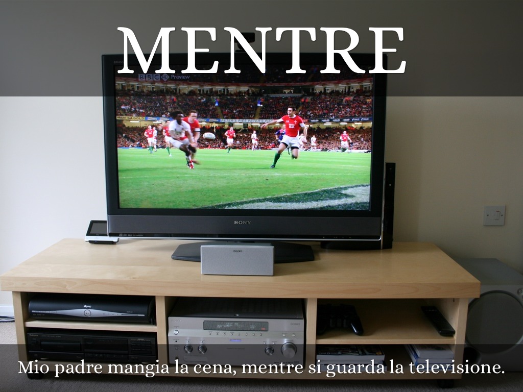 Mio padre mangia la cena, mentre si guarda la televisione.
