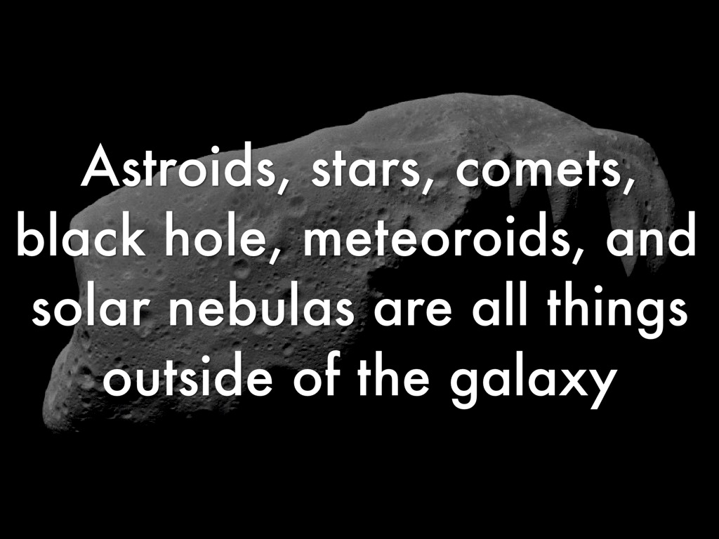 Astroids, stars, comets, black hole, meteoroids, and solar nebulas are all things outside of the galaxy