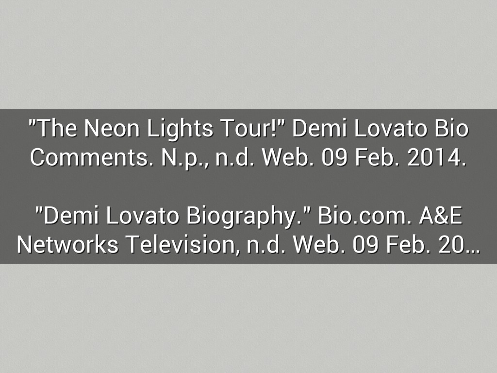 "The Neon Lights Tour!" Demi Lovato Bio Comments. N.p., n.d. Web. 09 Feb. 2014.