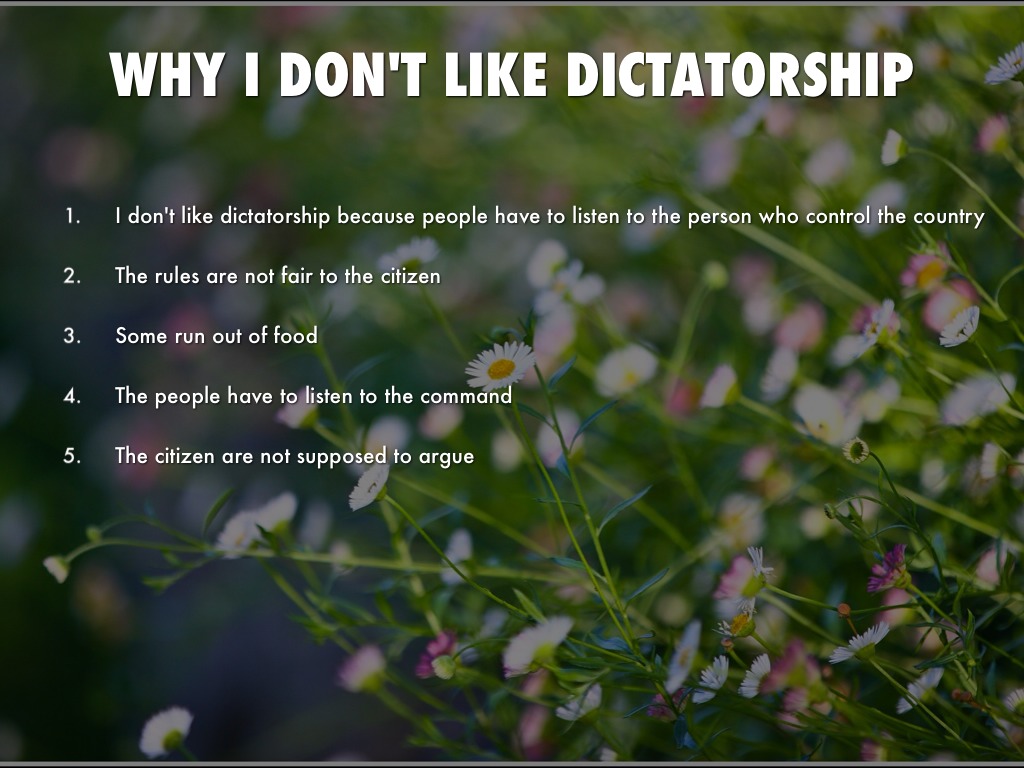 I DON'T LIKE DICTATORSHIP ALSO COMUNISM