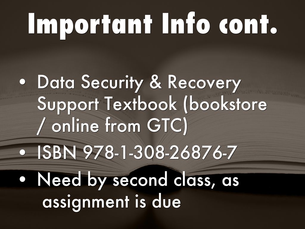 Data Security & Recovery Support Textbook (bookstore / online from GTC)