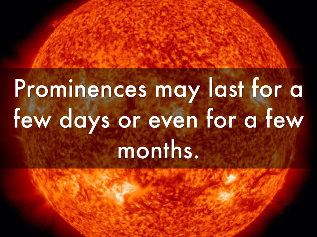 What is a prominence? an eruption of a flamelike tongue of relatively cool, high-density gas from the solar chromosphere into the corona where it can be seen during a solar eclipse or by observing strong spectral lines in its emission spectrum.