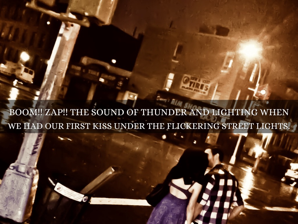 WE HAD OUR FIRST KISS UNDER THE FLICKERING STREET LIGHTS.