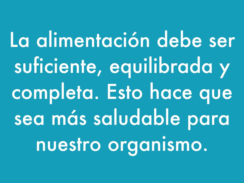 La alimentación debe ser suficiente, equilibrada y completa. Esto hace que sea más saludable para nuestro organismo.
