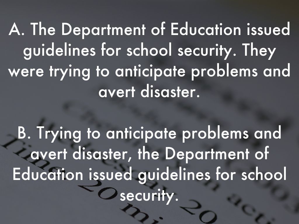A. The Department of Education issued guidelines for school security. They were trying to anticipate problems and avert disaster.
