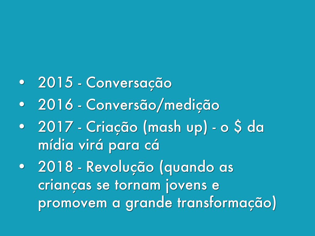 • 2017 - Criação (mash up) - o $ da mídia virá para cá