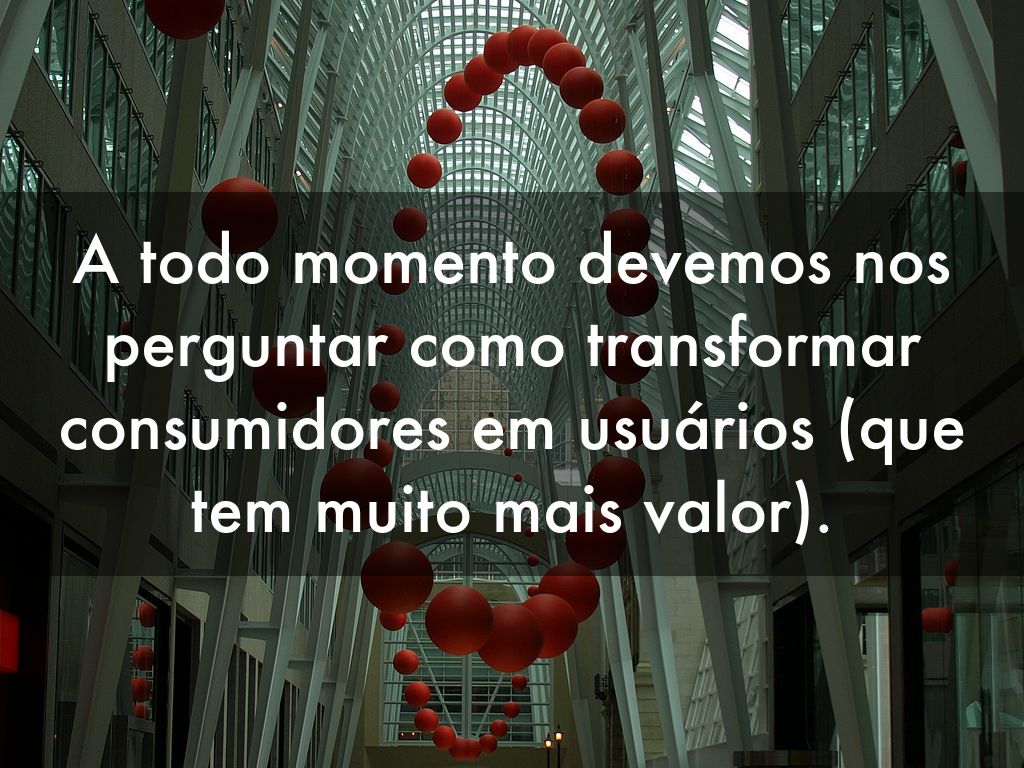 A todo momento devemos nos perguntar como transformar consumidores em usuários (que tem muito mais valor).