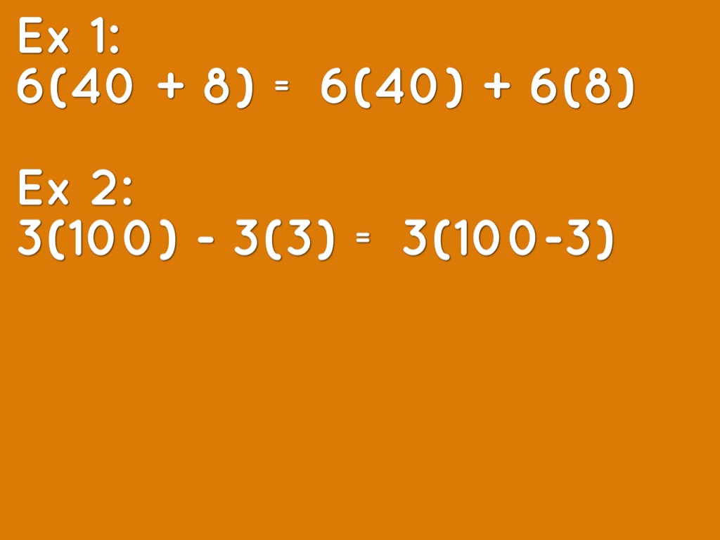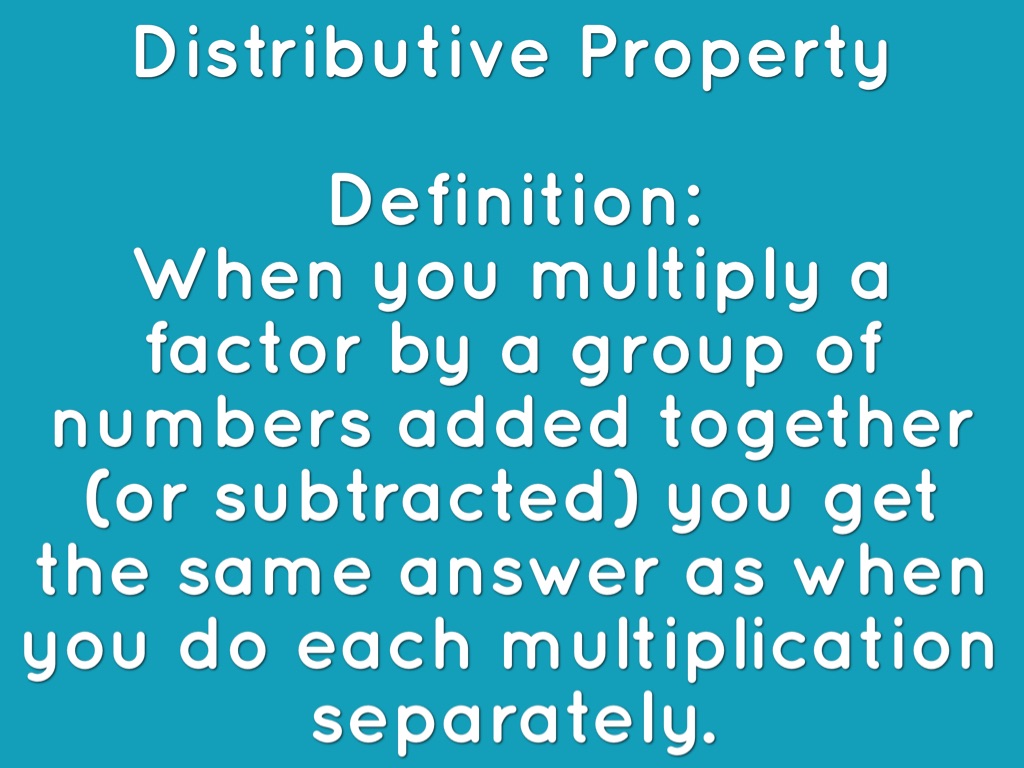 When you multiply a factor by a group of numbers added together (or subtracted) you get the same answer as when you do each multiplication separately.
