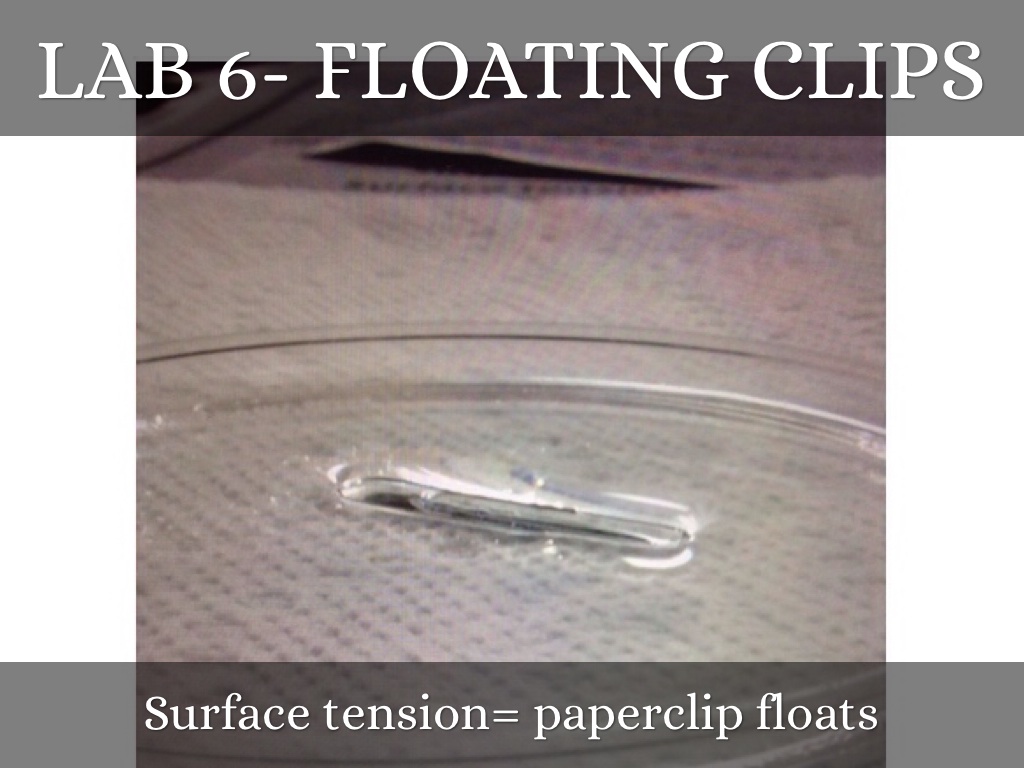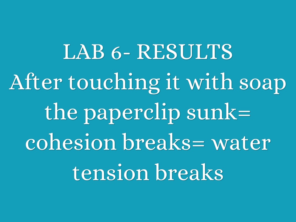 After touching it with soap the paperclip sunk= cohesion breaks= water tension breaks