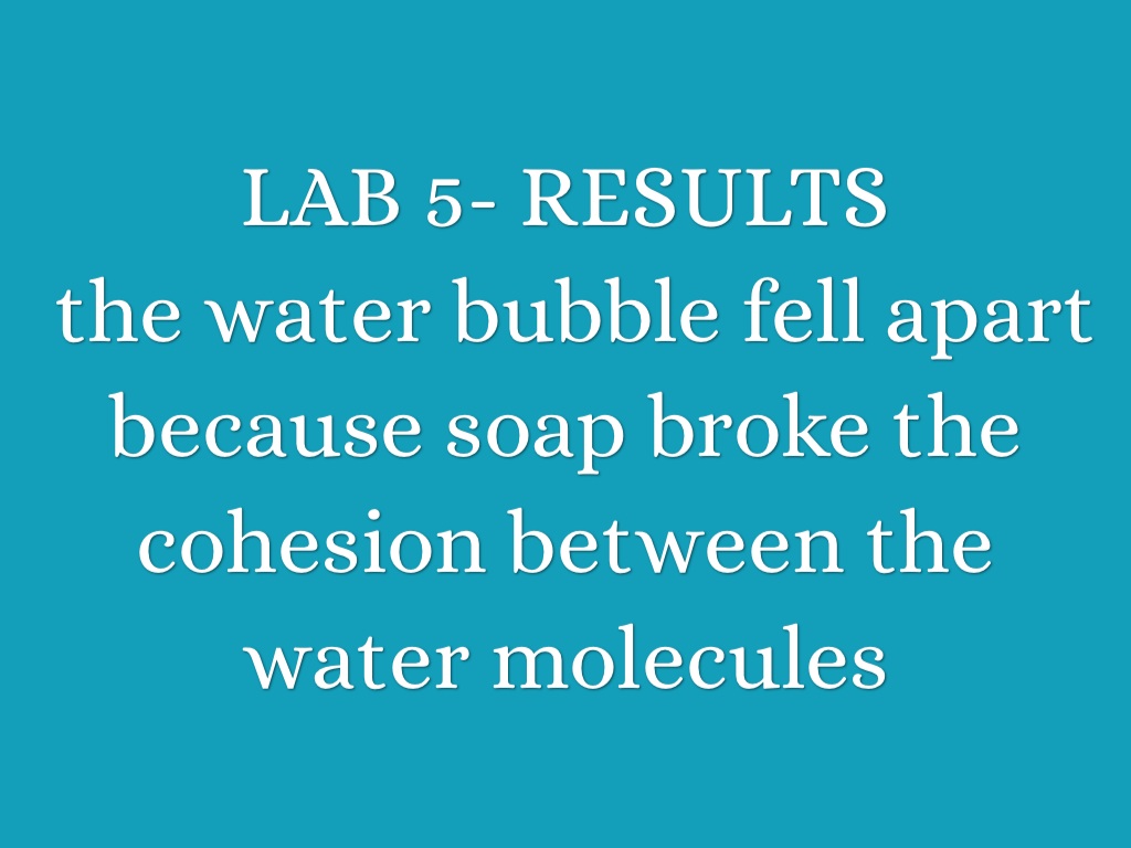 the water bubble fell apart because soap broke the cohesion between the water molecules