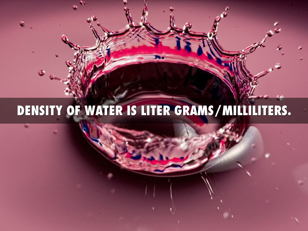 DENSITY OF WATER IS LITER GRAMS/MILLILITERS.
