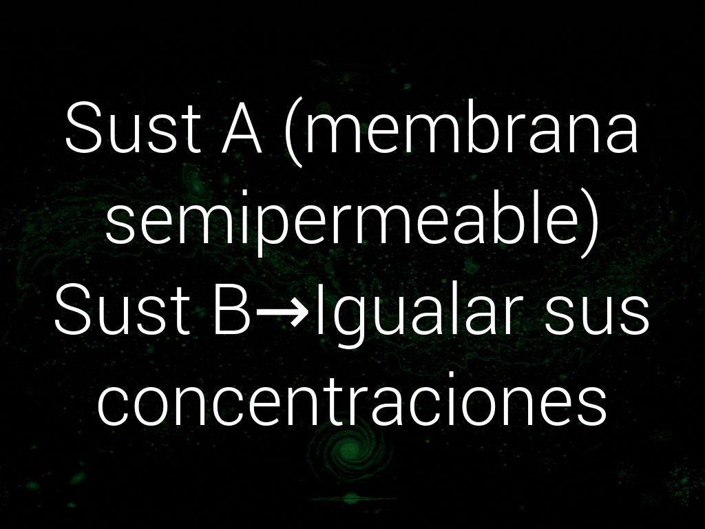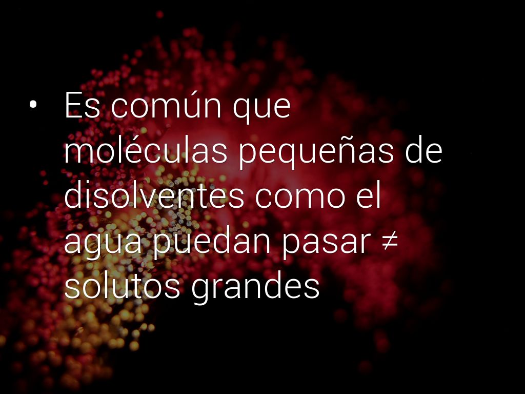 Paso de sustancias a través de una membrana semipermeable que tiene poros muy pequeños que permitiendo el paso de las moléculas del disolvente pero no del soluto.