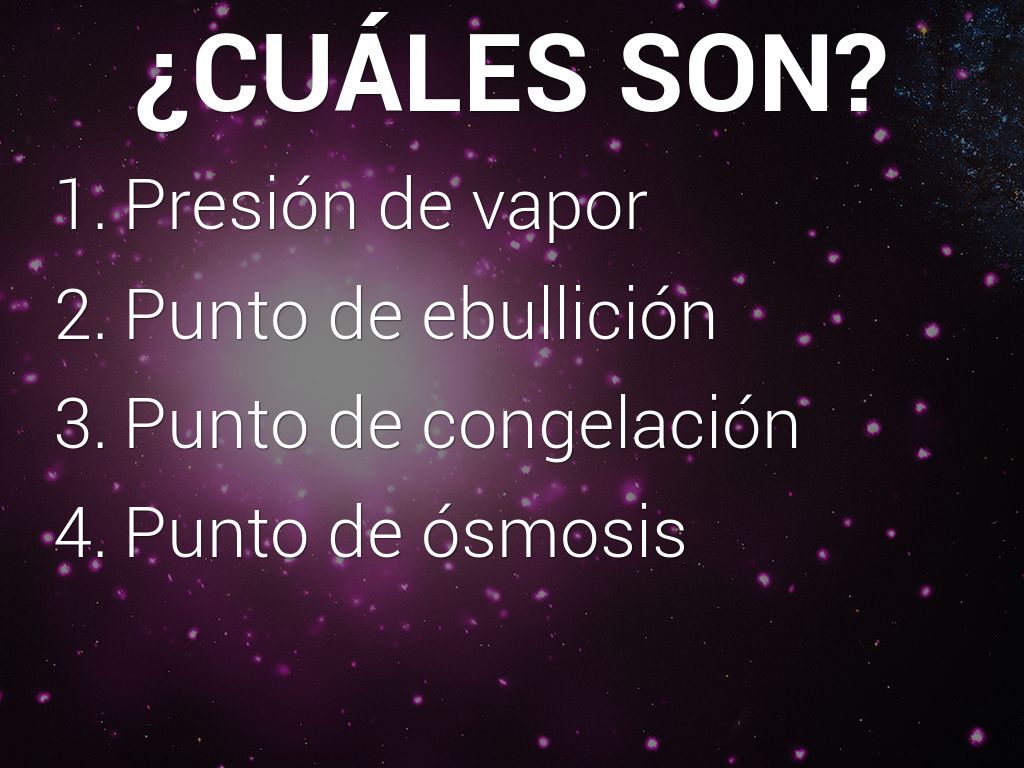 Las propiedades coligativas son propiedades físicas que van a depender del número de partículas de soluto en una cantidad determinada de disolvente o solvente